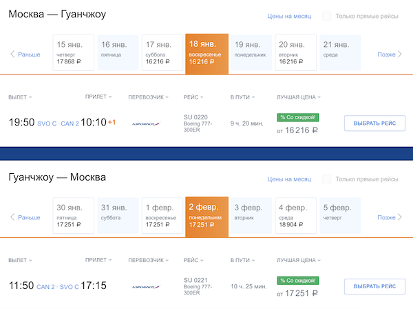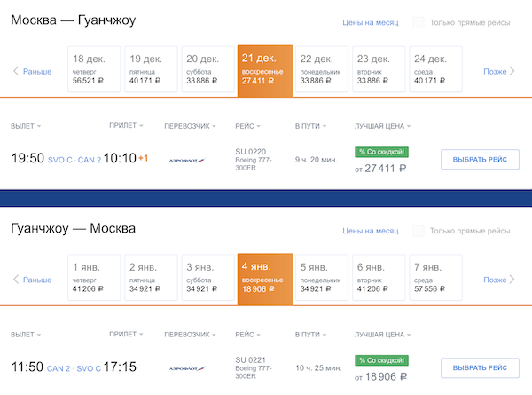 Москва — Гуанчжоу — Москва 33.500 рублей