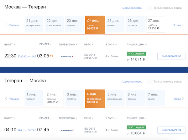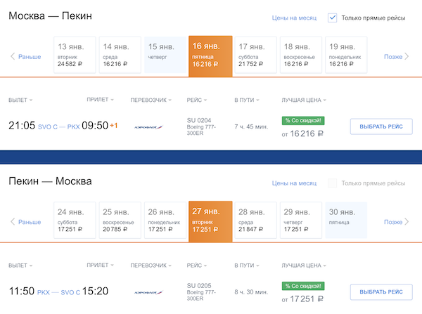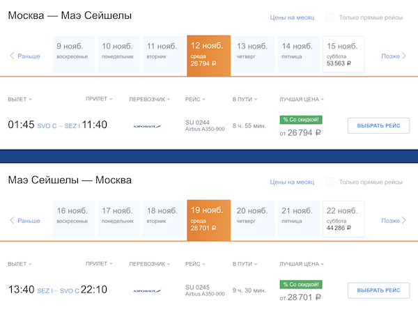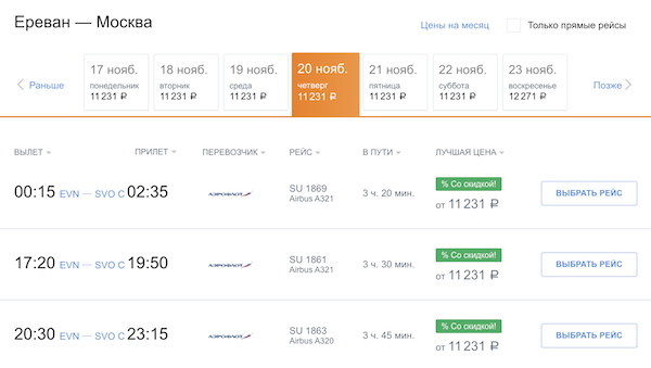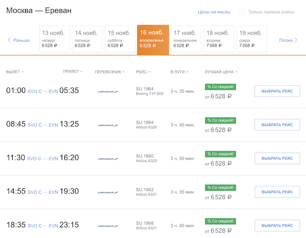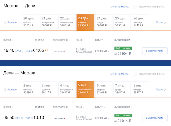 У Аэрофлота распродажа билетов на даты зимнего расписания.