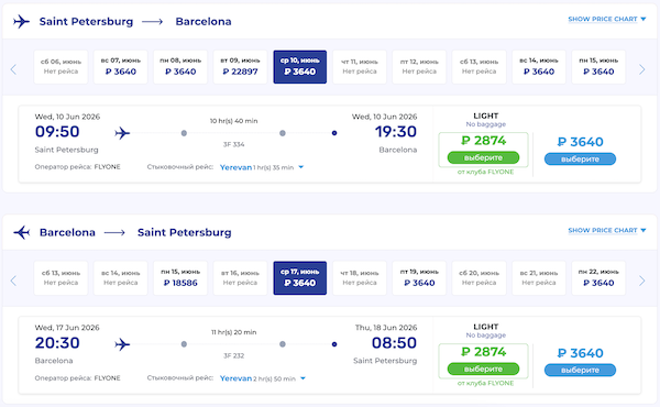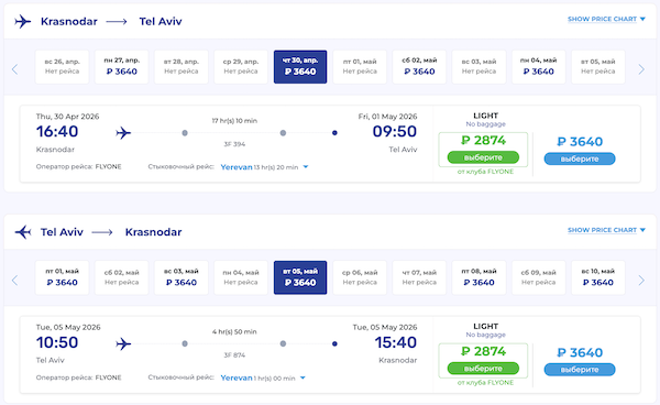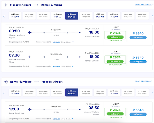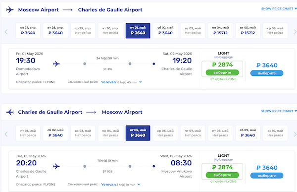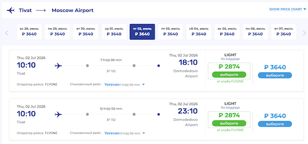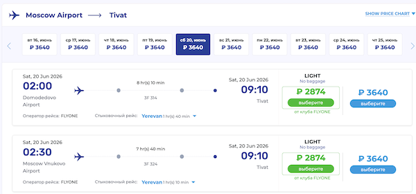 Как забронировать: на сайте авиакомпании (возможна оплата российскими картами). Минимальная цена для участников клуба FlyOne — членство в клубе можно купить или взять билеты без членства на 700 рублей дороже.
