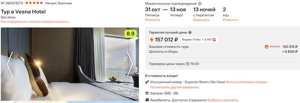 Стоимость в примерах указана за одного человека при условии поездки вдвоем. Стоимость туров для 1 человека можно посмотреть здесь или на странице отелей, изменив количество туристов.