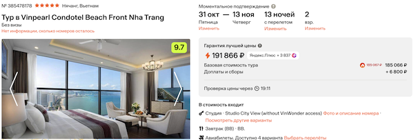 Vinpearl Condotel Beach Front Nha Trang 5* с завтраками 95.900 рублей за человека (191.900 рублей за двоих)