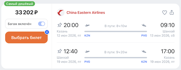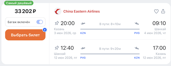 В Китай летом: прямые рейсы из Казани в Шанхай 33.200 рублей туда-обратно.