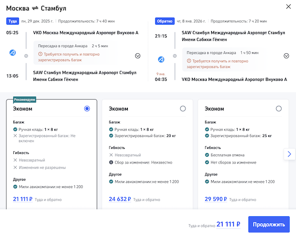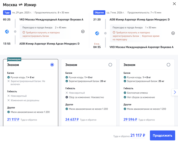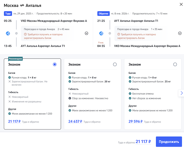 В Турцию на Новый год: билеты из Москвы в Анкару, Анталью, Измир и Стамбул от 18.000 рублей туда-обратно.