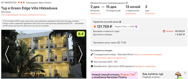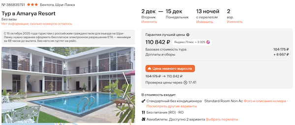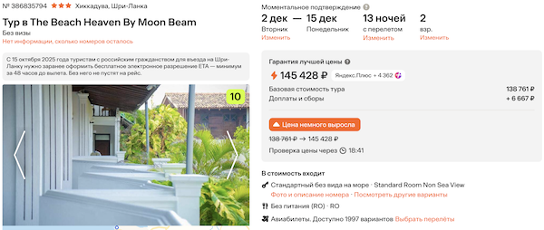 Две недели на Шри-Ланке: горящие туры из Москвы от 55.400 рублей за человека.