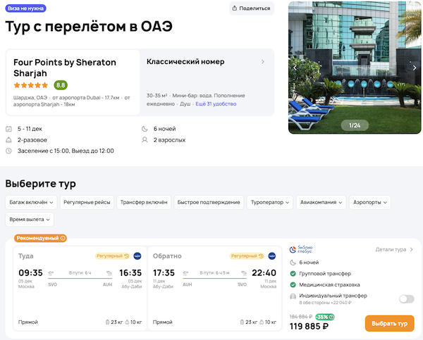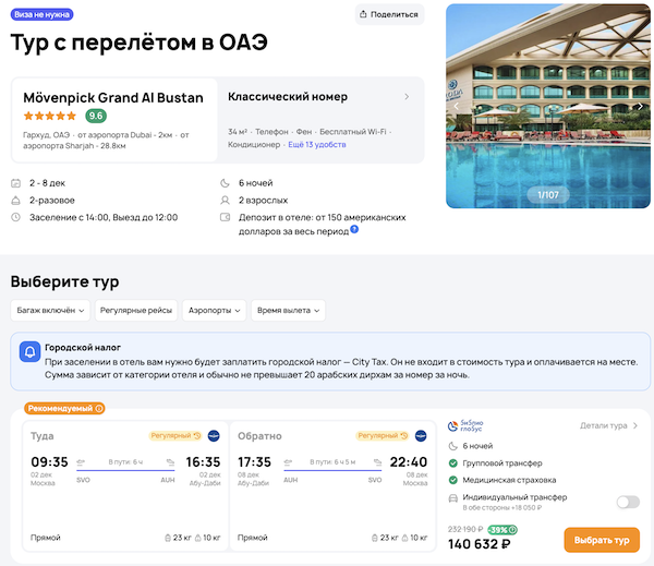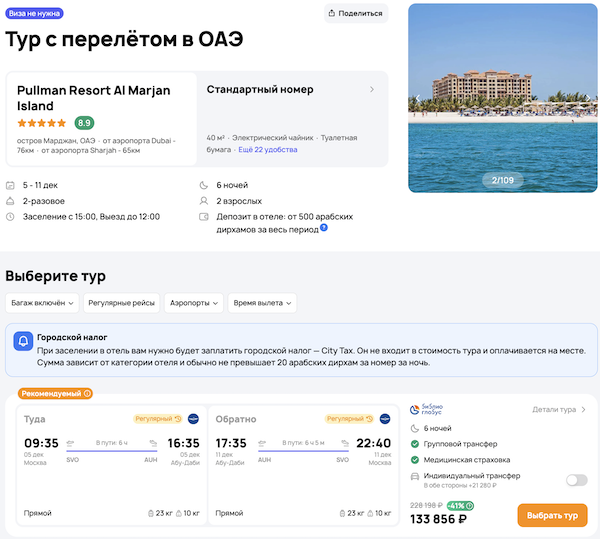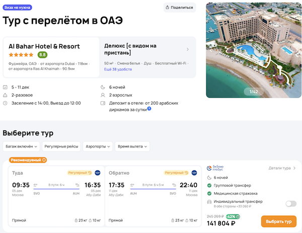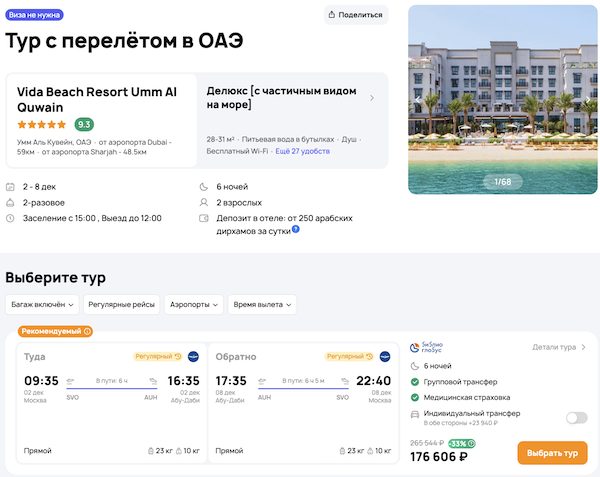 5*, питание включено: туры из Москвы в ОАЭ от 59.900 рублей за человека.