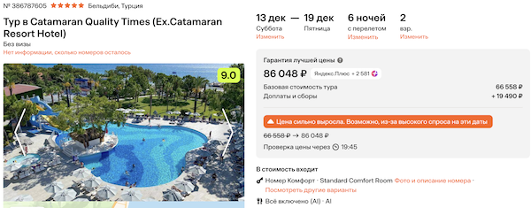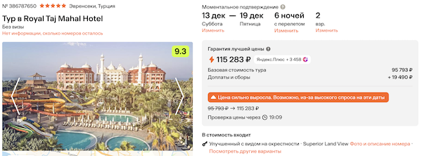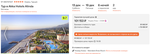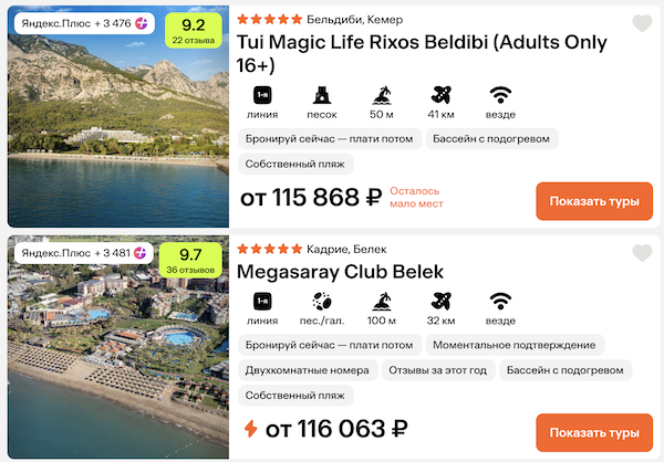 Стоимость в примерах указана за одного человека при условии поездки вдвоем, стоимость туров для одного человека можно посмотреть здесь или на страницах отелей.