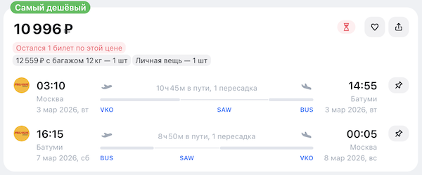 Как забронировать: перейдите по ссылкам в примерах или выберите другие даты на авиасейлс или трип.ком.