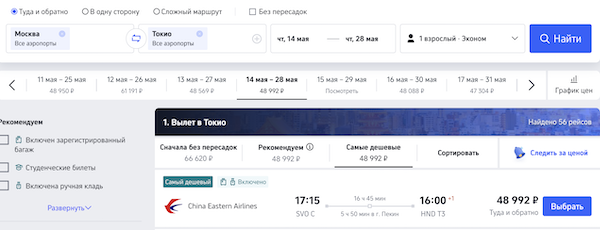 Билеты в Токио на май-июнь сейчас стоят от 48.200 рублей. Выбирайте нужные даты на трип.ком