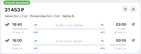 Горящие билеты на прямые чартерные рейсы на Пхукет из Новосибирска, Красноярска, Перми и других городов от 31.500 рублей туда-обратно.