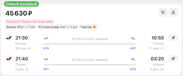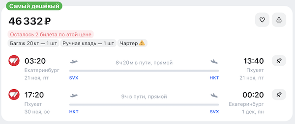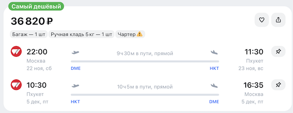 Горящие билеты на прямые чартерные рейсы на Пхукет из Москвы, Казани, Екатеринбурга, Красноярска и Перми от 36.800 рублей туда-обратно.