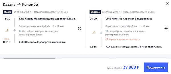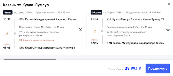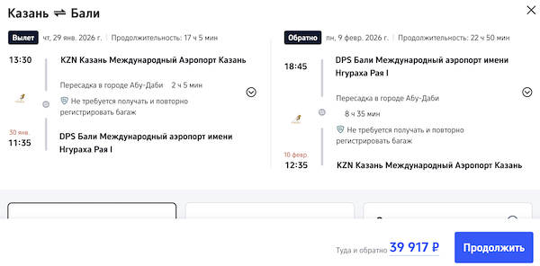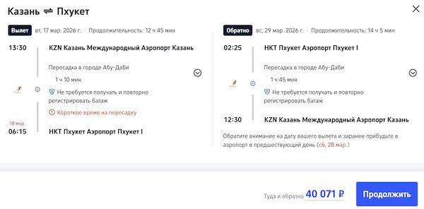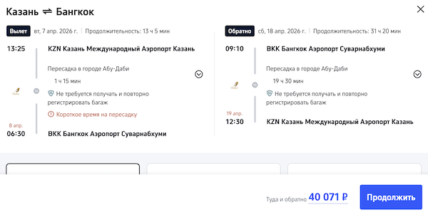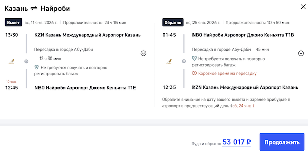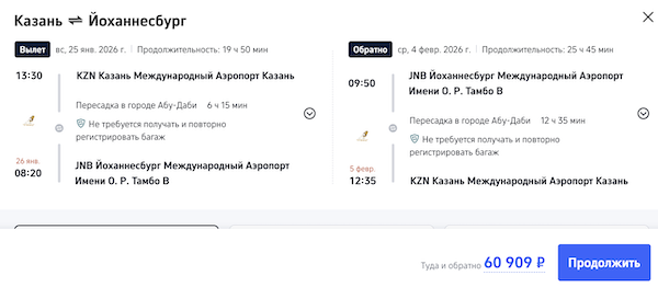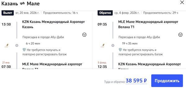 Рейсы выполняются с пересадкой в Абу-Даби.