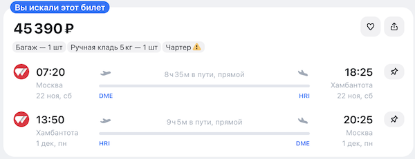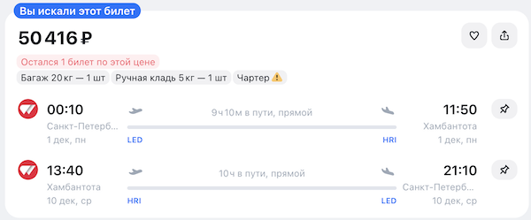 Горящие билеты на прямые чартерные рейсы из Москвы и Санкт-Петербурга на Шри-Ланку от 41.300 рублей туда-обратно.
