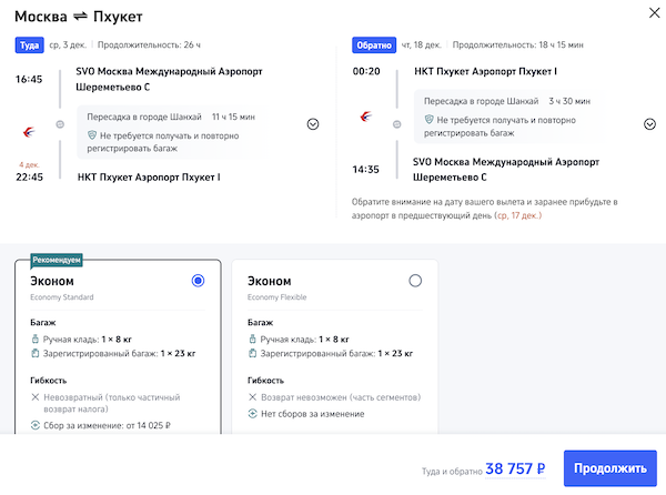 Из Москвы на Пхукет в декабре 38.800 рублей туда-обратно.