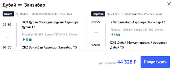 Как забронировать: купить отдельные билеты Дубай — Занзибар и Москва — Дубай.
