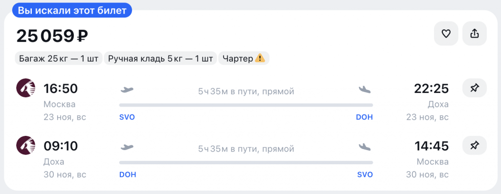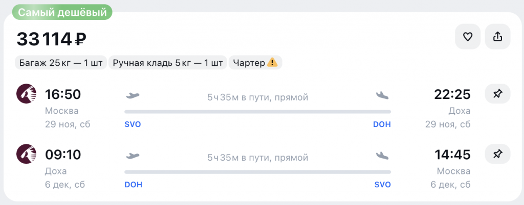 По такой цене доступны блоки мест туроператоров на регулярных рейсах Qatar Airways.