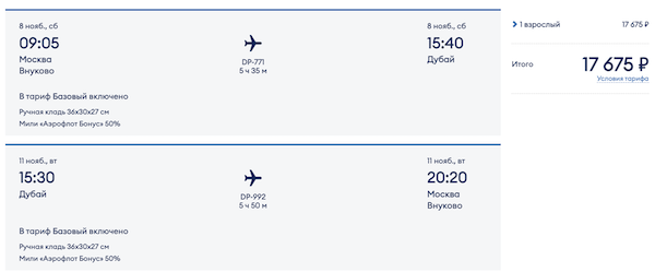 Горящие билеты из Москвы в Дубай 17.700 рублей туда-обратно.