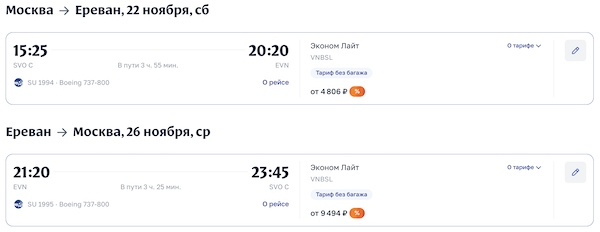 Аэрофлот: горящие билеты из Москвы в Ереван от 14.300 рублей туда-обратно.