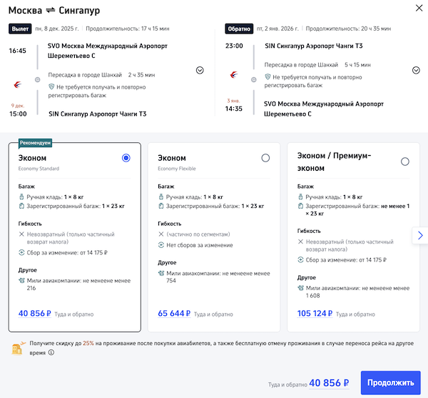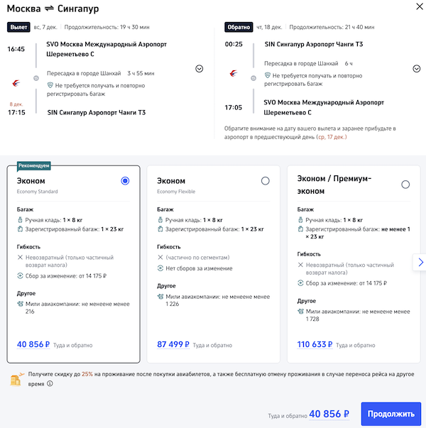 Билеты из Москвы в Сингапур в декабре от 40.900 рублей туда-обратно.