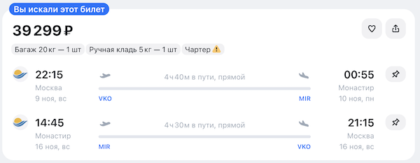 Горящие билеты на прямые рейсы из Москвы в Тунис 39.300 рублей туда-обратно.