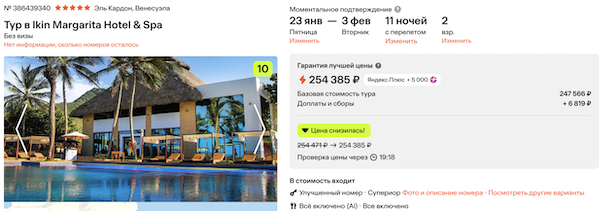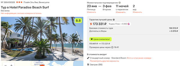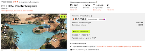 Туры из Москвы в Венесуэлу зимой от 86.600 рублей за человека.