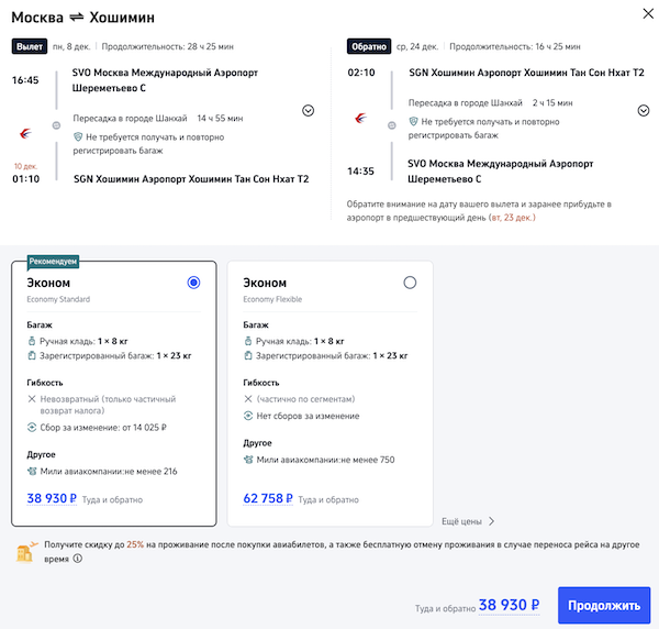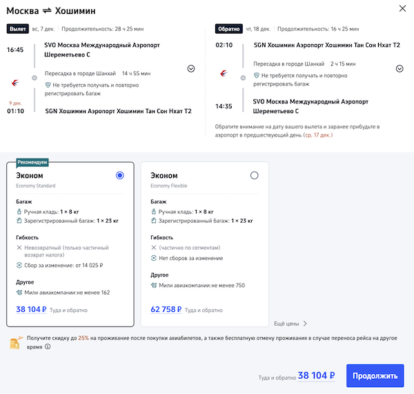 Из Москвы во Вьетнам в декабре от 38.100 рублей туда-обратно.