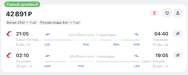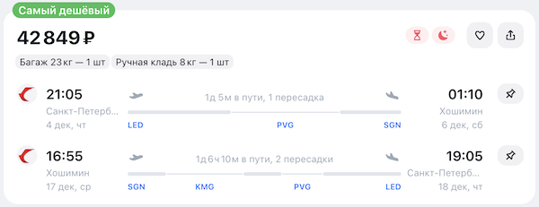 Из Санкт-Петербурга во Вьетнам: билеты в Хошимин 42.900 рублей туда-обратно.