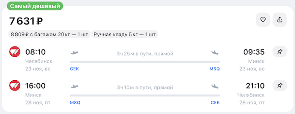 Билеты в Минск из Самары и Челябинска от 6.300 рублей туда-обратно.