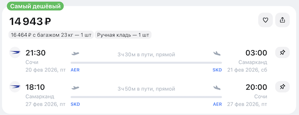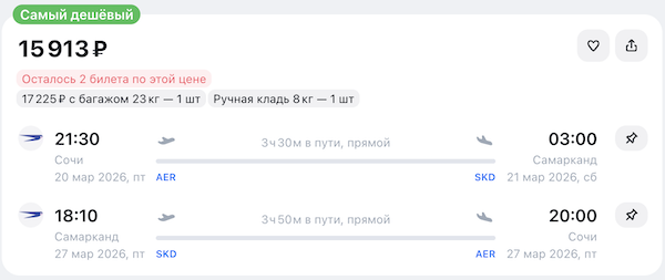 Из Сочи в Самарканд от 14.900 рублей туда-обратно.