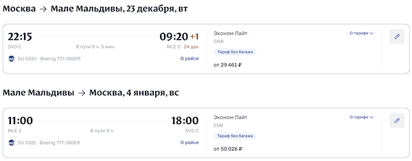 Новый год на Мальдивах: прямые рейсы Аэрофлота из Москвы 79.500 рублей туда-обратно.