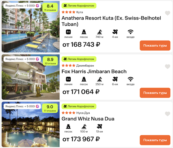 — прямой перелет в Денпасар и обратно, Аэрофлот;