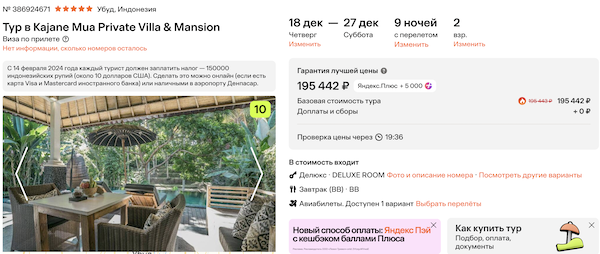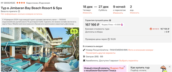 Туры из Москвы на Бали в декабре от 73.000 рублей за человека.