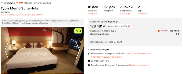 Стоимость в примерах указана за одного человека при условии поездки вдвоем, стоимость туров для одного человека можно посмотреть здесь или на страницах отелей.