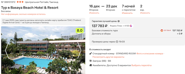 Basaya Beach Hotel & Resort 3* с завтраками 68.900 рублей за человека (137.800 рублей за двоих)