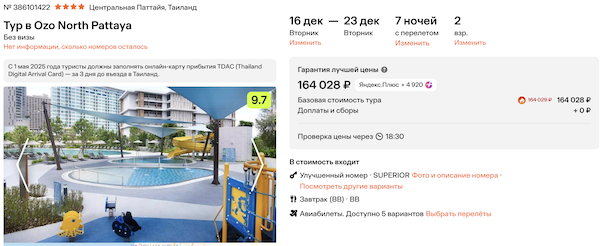 Ozo North Pattaya 4* с завтраками 82.000 рублей за человека (164.000 рублей за двоих)