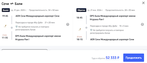 Новогодние каникулы на Бали: билеты из Сочи 52.300 рублей туда-обратно.