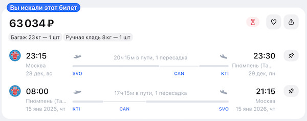 Новый год в Камбодже: билеты из Москвы 63.000 рублей туда-обратно.