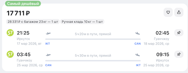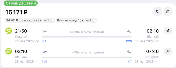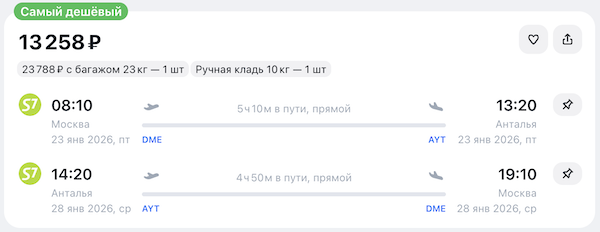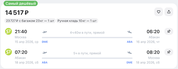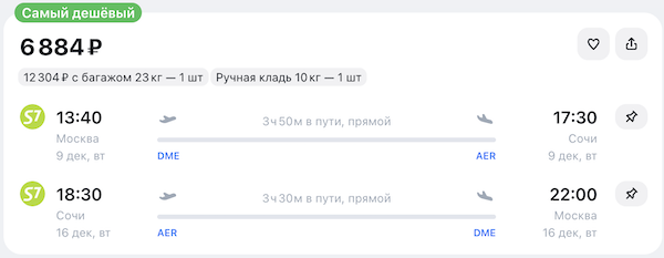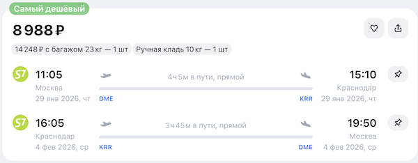 У S7 распродажа билетов по многим направлениям.