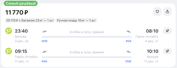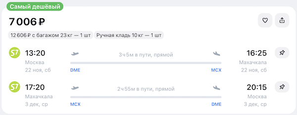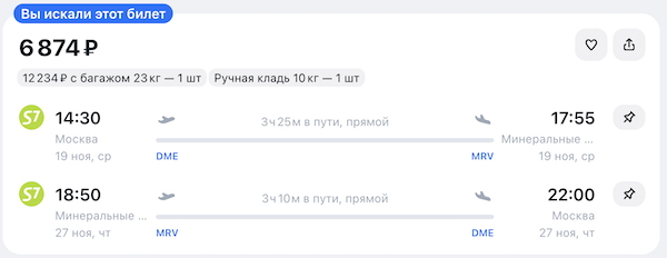 Период путешествия: с 17 ноября. Период распродажи: до 13 ноября включительно.