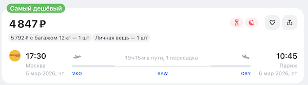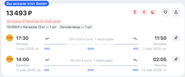 Как забронировать: перейдите по ссылкам в примерах или выберите другие даты на авиасейлс или трип.ком.