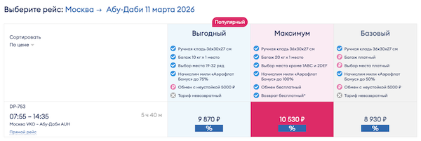 Размер скидки по промокоду отличается в зависимости от тарифа. Самые большие скидки на тариф Максимальный — с включенным багажом и бесплатным обменом/возвратом.