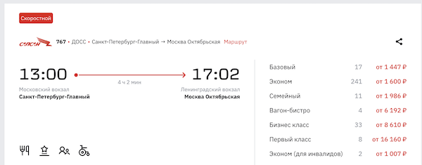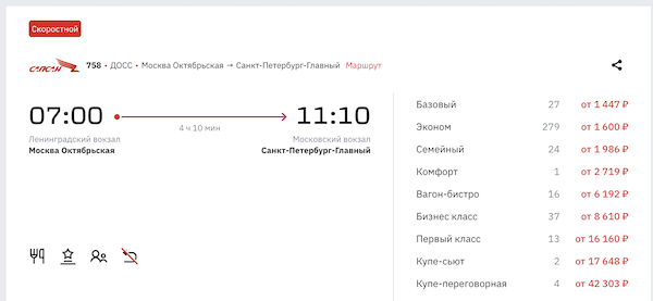 Только 17 декабря: билеты на Сапсаны между Москвой и Санкт-Петербургом от 1.400 рублей в каждую сторону.