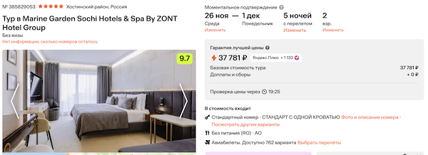 Туры из Москвы в Сочи в конце ноября: перелет Аэрофлотом и проживание в 5* отеле от 18.900 рублей за человека.
