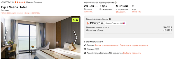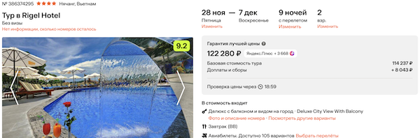 Стоимость в примерах указана за одного человека при условии поездки вдвоем. Стоимость туров для 1 человека можно посмотреть здесь или на странице отелей, изменив количество туристов.