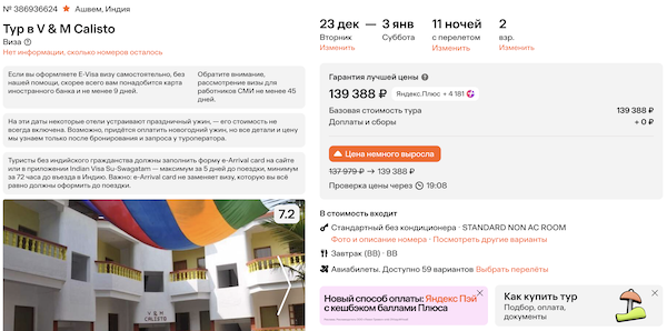 Стоимость в примерах указана за одного человека при условии поездки вдвоем, стоимость туров для одного человека можно посмотреть здесь или на страницах отелей.