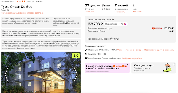 Okean De Goa 4* с завтраками 79.300 рублей за человека (158.700 рублей за двоих)