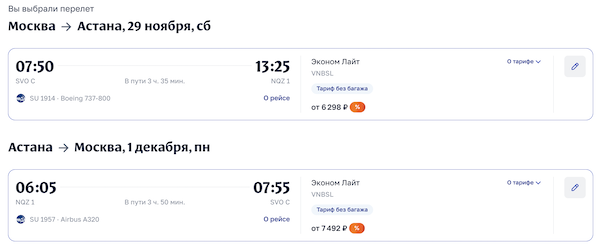В Казахстан на выходные: из Москвы в Астану Аэрофлотом 13.800 рублей туда-обратно.