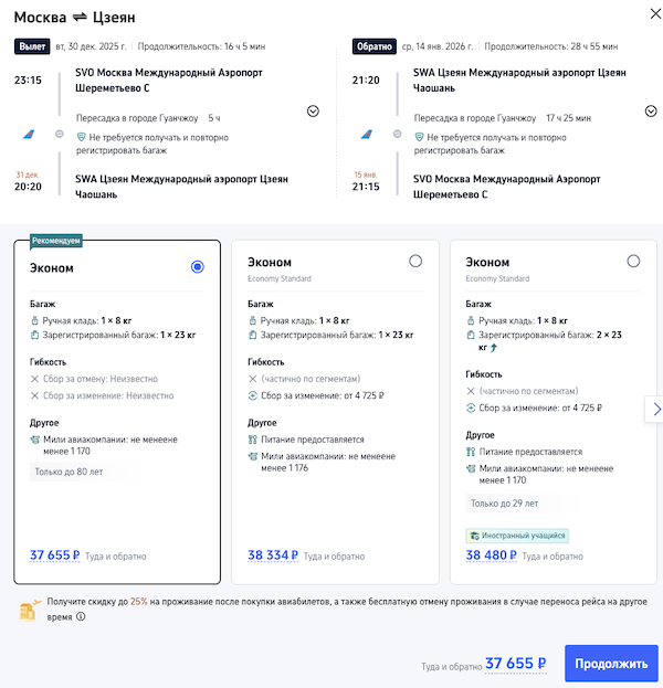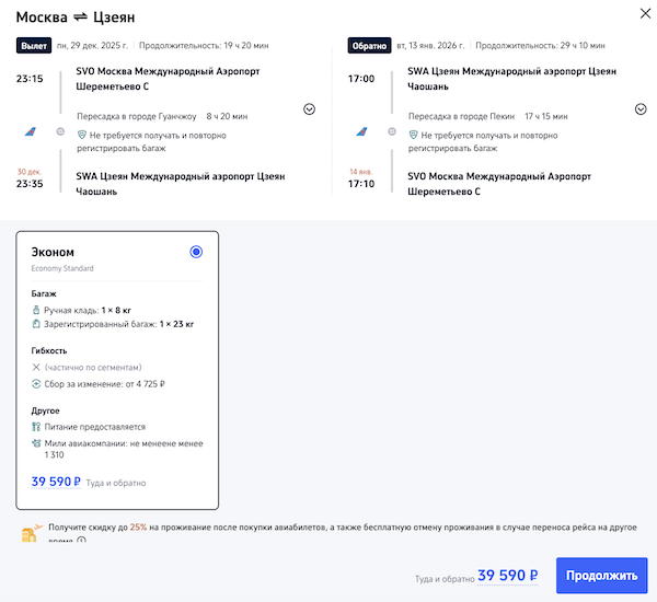 В Китай на Новый год: билеты из Москвы в Цзеян 37.700 рублей туда-обратно.