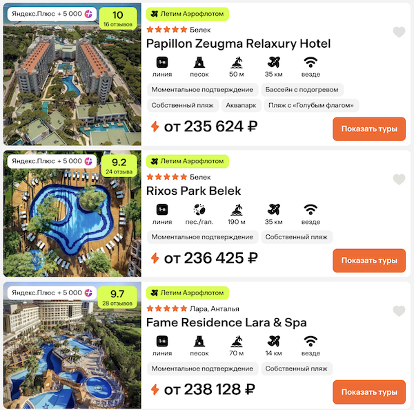 — прямой перелет в Анталью и обратно, Аэрофлот;