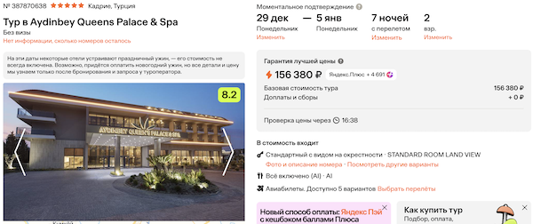 Aydinbey Queens Palace & Spa 78.200 рублей за человека (156.400 рублей за двоих)