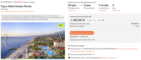 Стоимость в примерах указана за одного человека при условии поездки вдвоем, стоимость туров для одного человека можно посмотреть здесь или на страницах отелей.